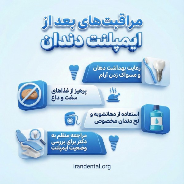 مسواک زدن، نخ دندان، معاینات منظم و پرهیز از فشار زیاد روی ایمپلنت.